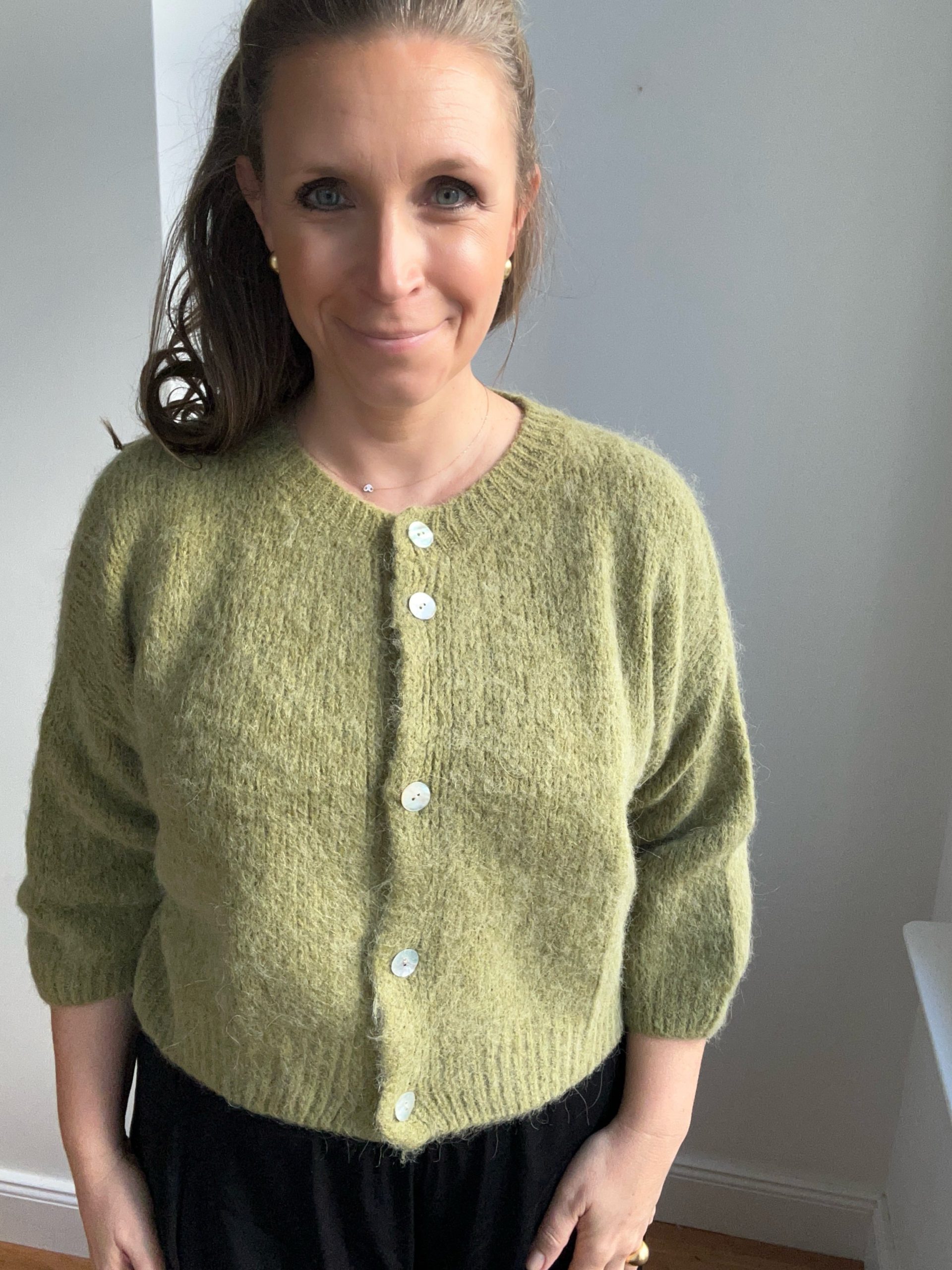 Kurze Strickjacke Damen moosgrün | Johanna Paris Cardigan