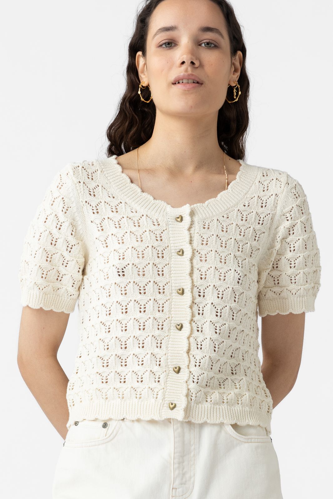 Kurze Strickjacke mit Herz Knöpfen