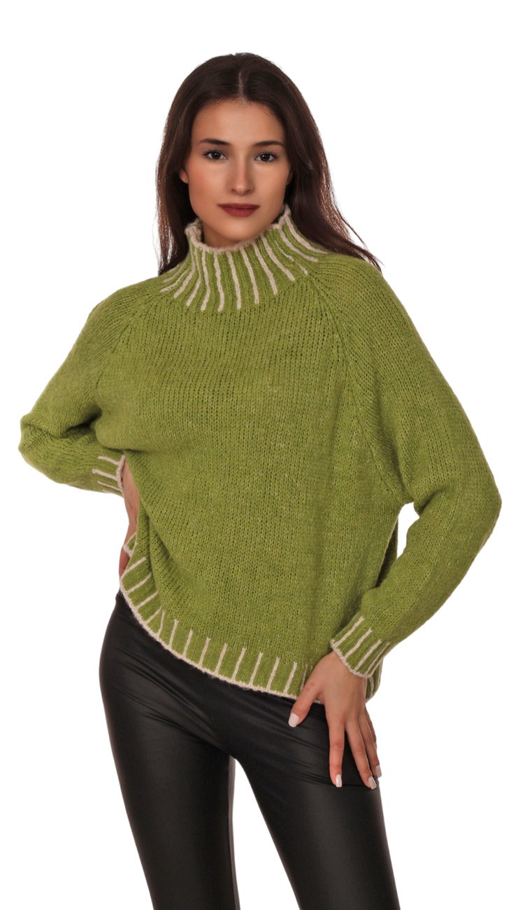 Pullover Langarm Stehkragen Streifendesign Apfelgrün Weiß