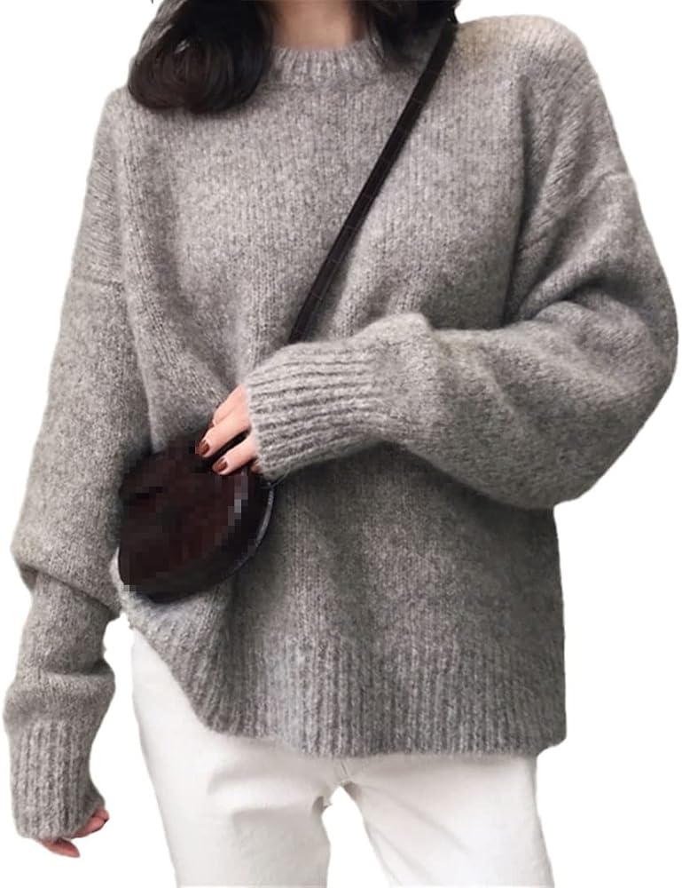 Alloaone Dicker Oversize Pullover Damen Pullover Kaschmir Wolle Strickpullover, grau, XL