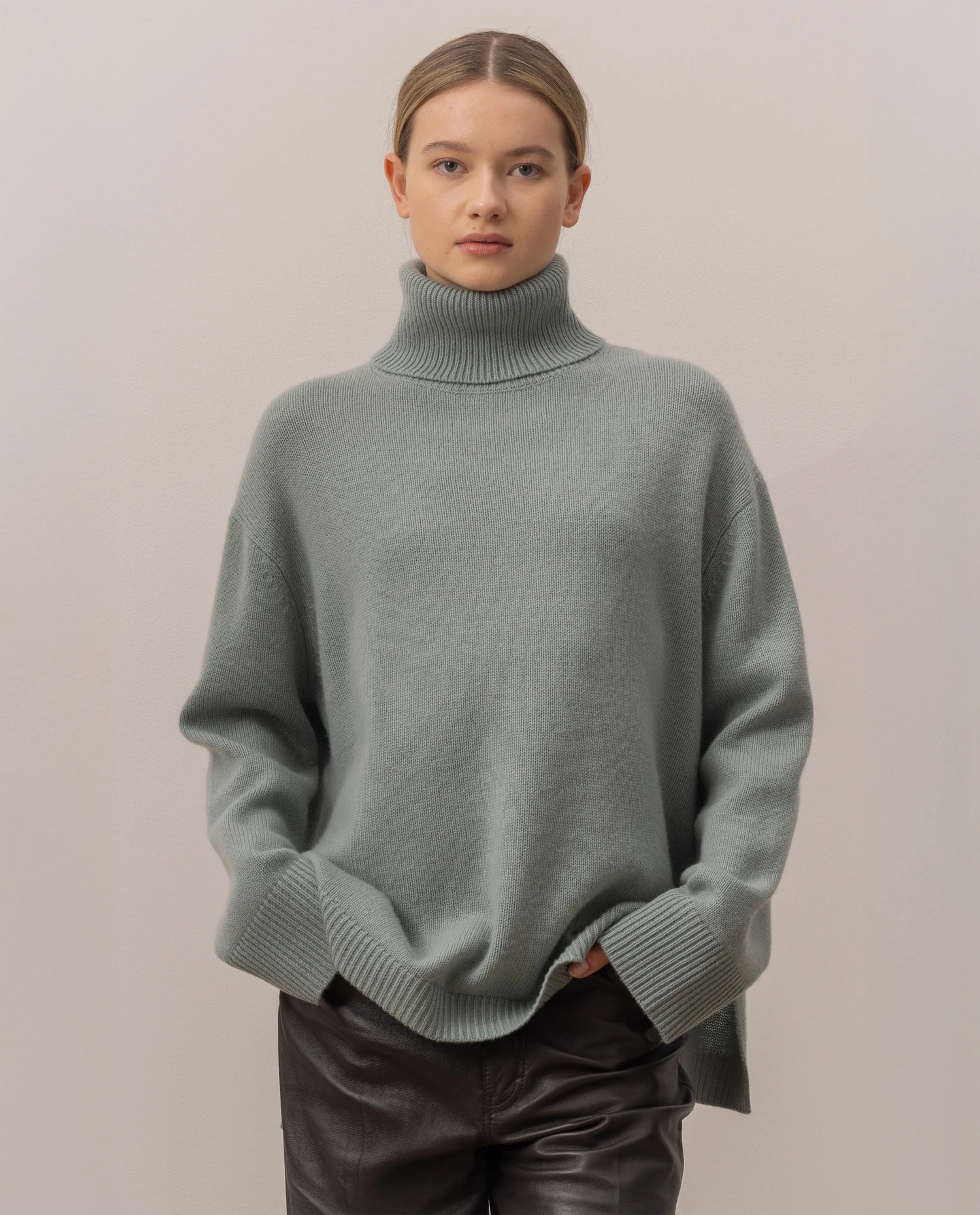 Woll Mischung Pullover in Grün Lockerer Schnitt
