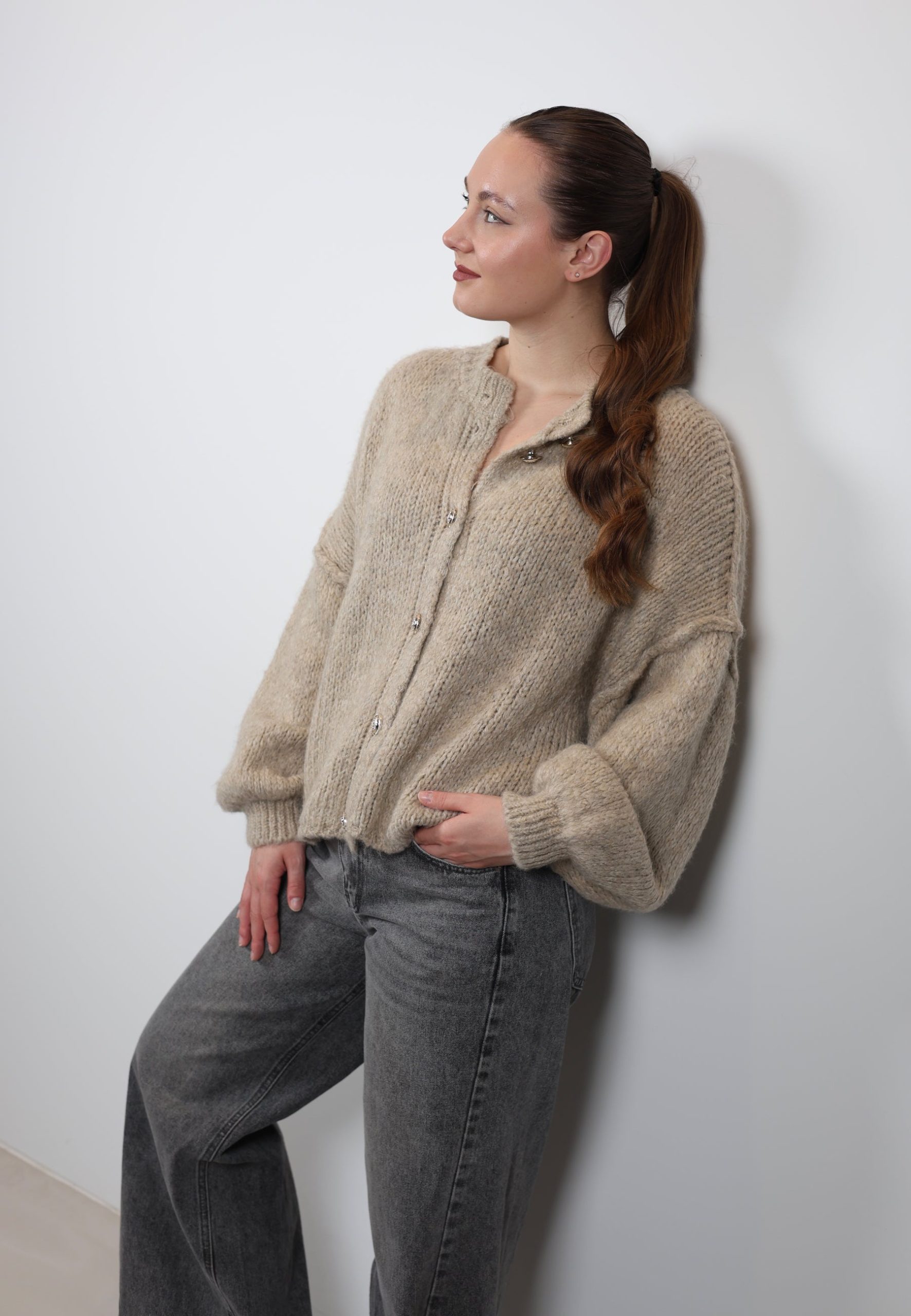Strickjacke mit goldenen Knöpfen Ella kurz Beige