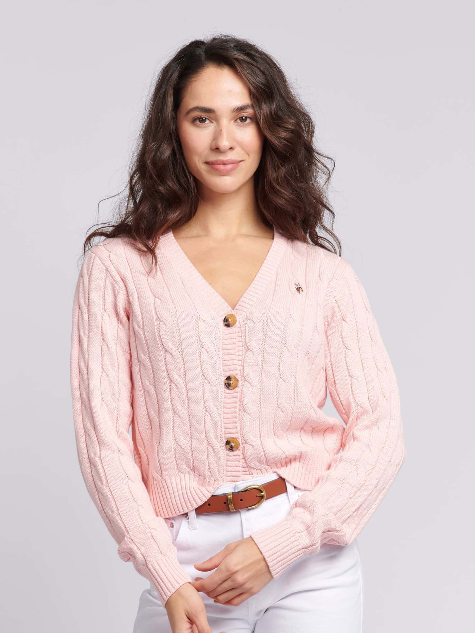 Kaufen Sie Rosa U.S. Polo Assn – kurz geschnittene Strickjacke für Damen mit Zopfmuster bei Next Deutschland