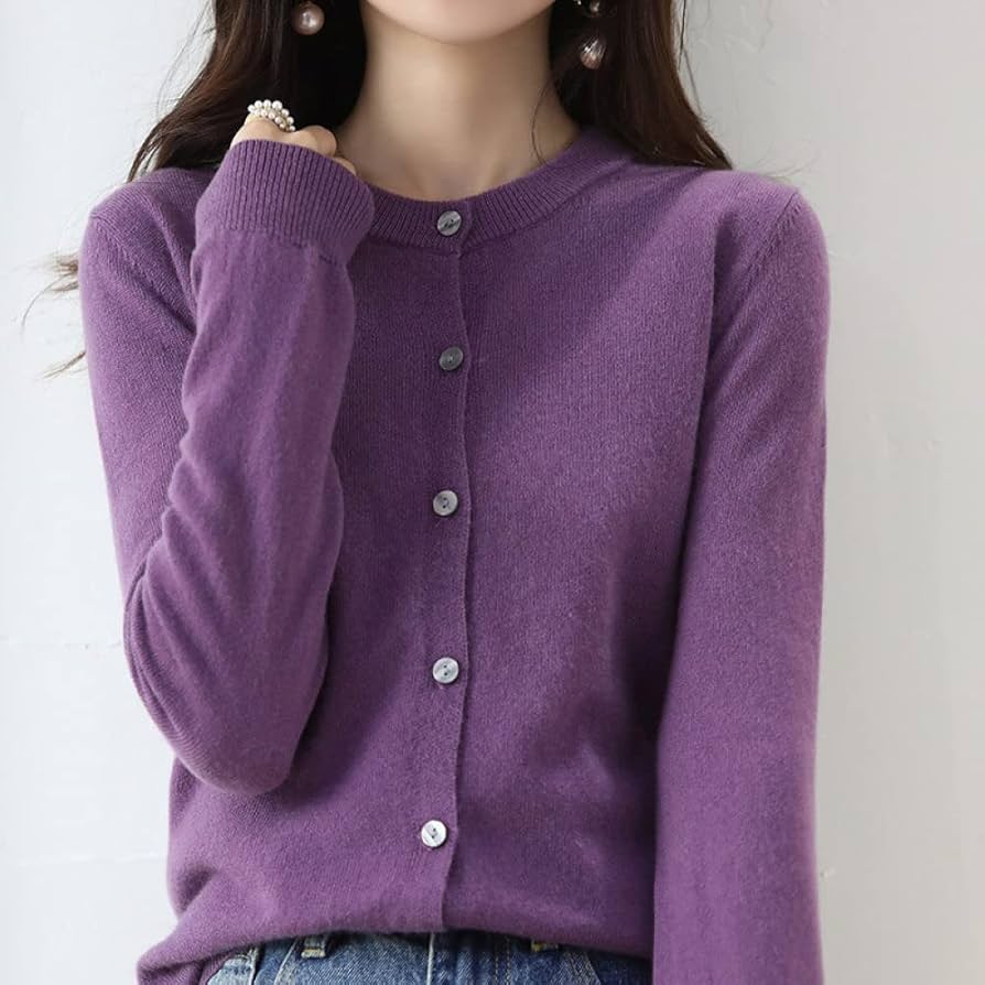 Strickjacke Damen,Modischer Einfarbiger Cardigan Mit Rundhalsausschnitt In Lila Weich Schmal Geschnitten Langärmliger Mantel Pullover Vorne Offen …