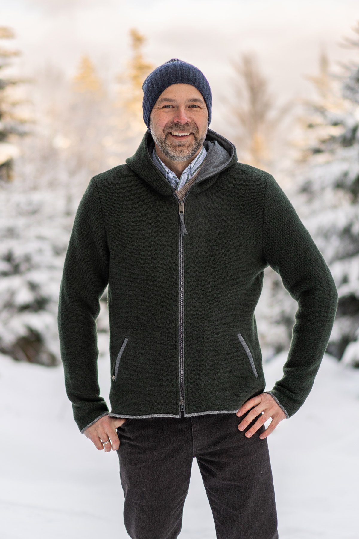 Strickjacke mit Kapuze olivgrün — Karl Jäger