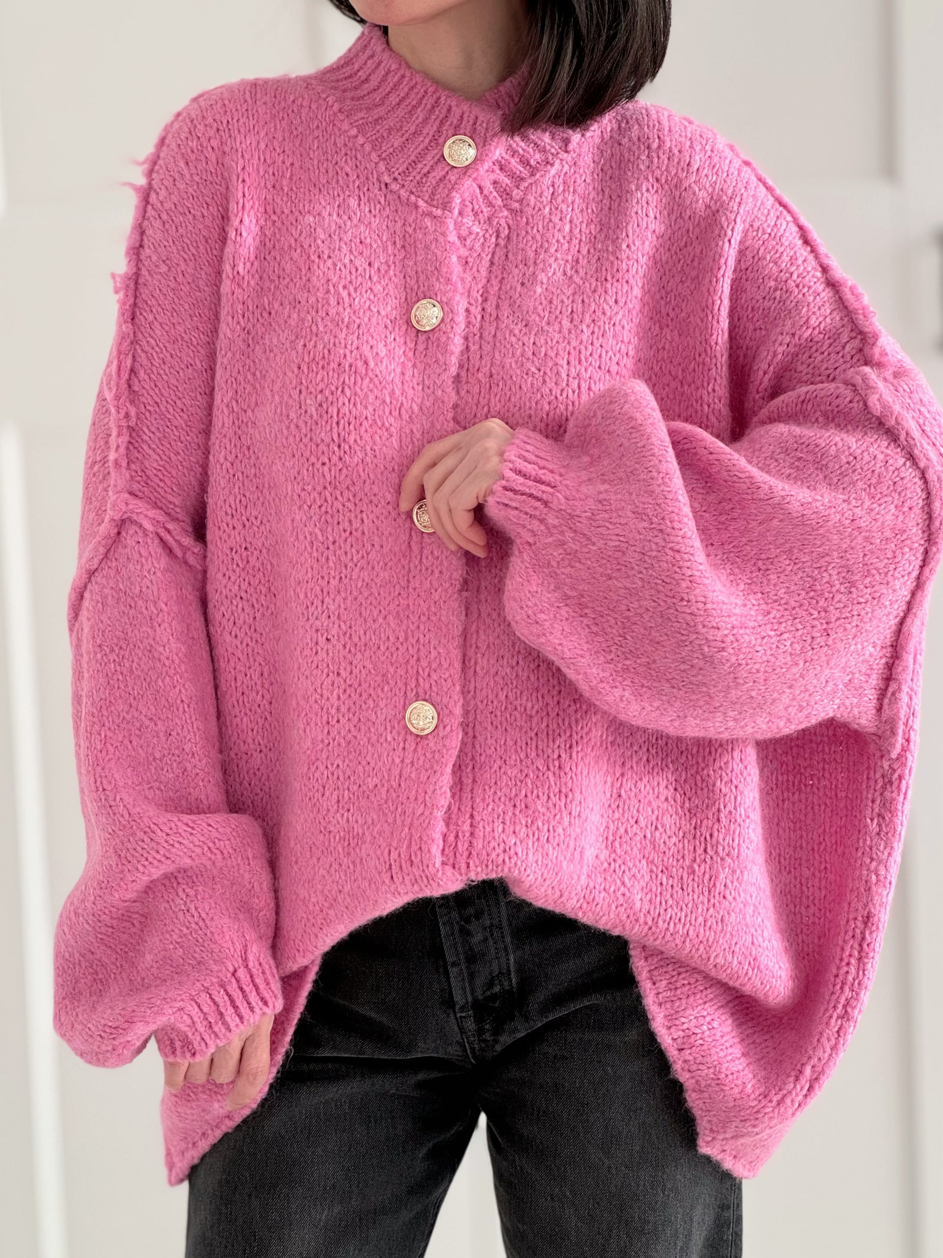 Oversize Strickjacke, goldene Knöpfe, 20+ Farben, Rosa