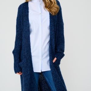 SASSYCLASSY Longstrickjacke Oversize Strickjacke Damen lang aus weichem Strick Strick Cardigan mit Taschen Strickjacke mit Ballonärmeln Made in Italy