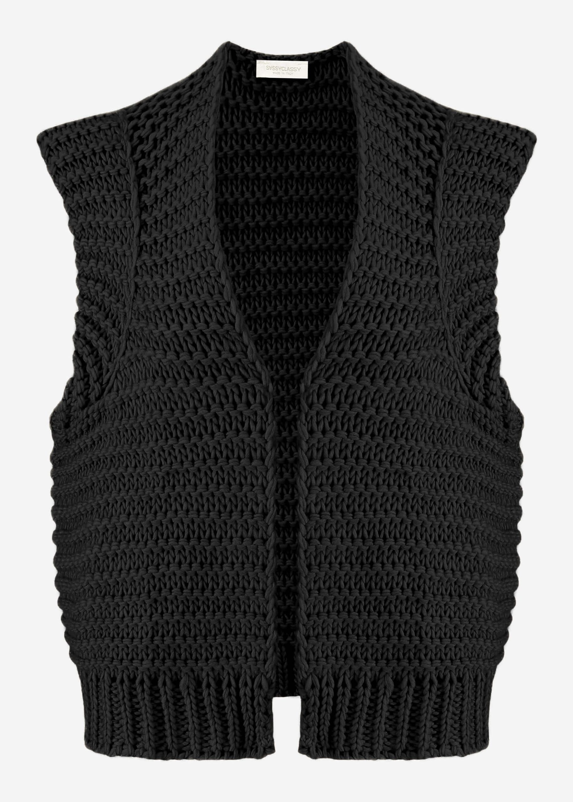 Ärmellose Strickweste mit strukturierten Schultern schwarz One Size